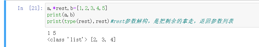 标识符rest将尽可能收集剩余的数据组成一个列表