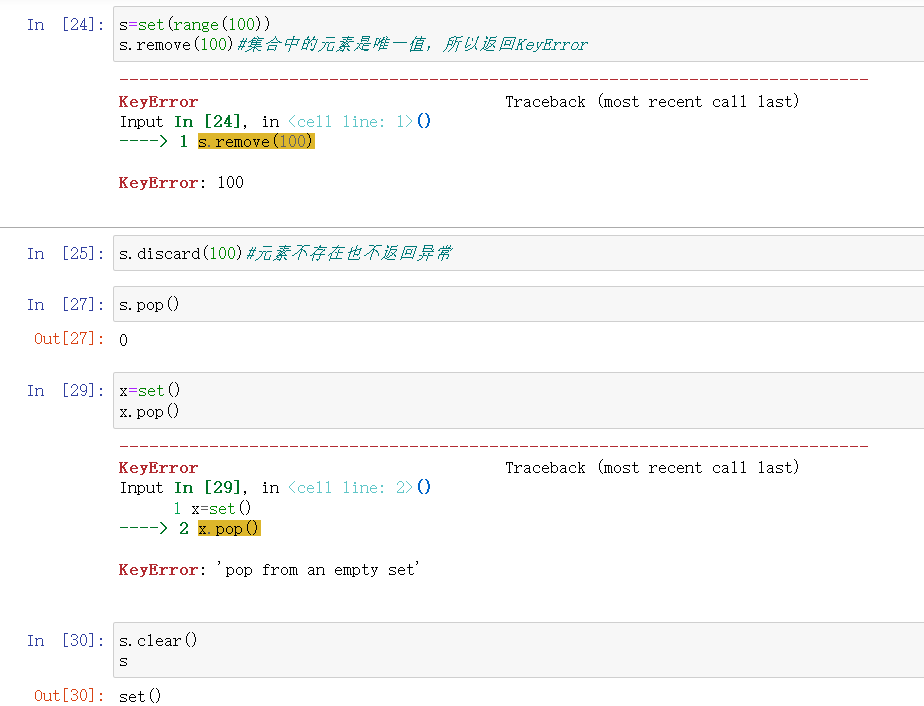 - 元素不存在,抛出KeyError异常。为什么是KeyError?