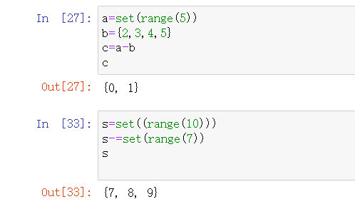 - symmetric_differece_update(other) 获取和另一个集合的对称差集并就地修改