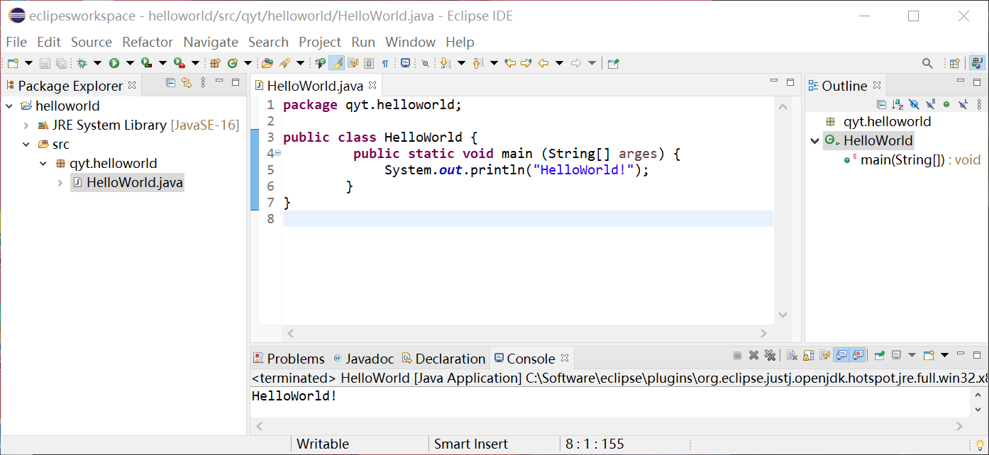 通过今天的学习发现昨天在Eclipse中编译的HelloWorld.java的包名不能出现大写字母,今天又重新做了一次