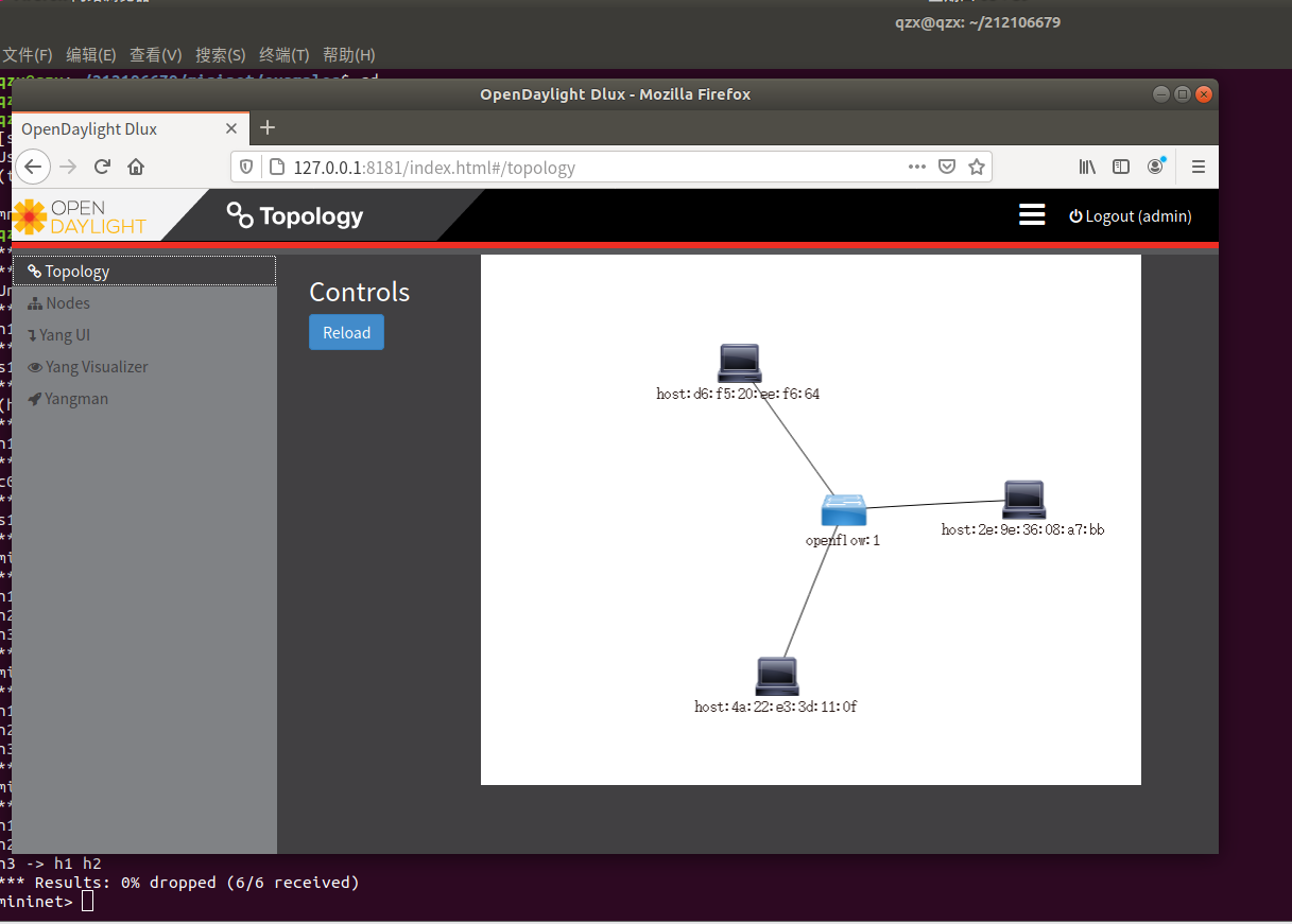 利用Mininet平台搭建下图所示网络拓扑,并连接OpenDaylight控制器;