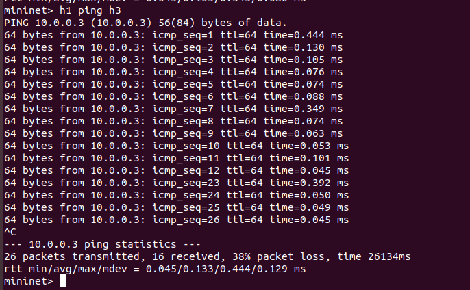 通过Postman工具调用OpenDaylight提供的API下发流表,实现拓扑内主机h1和h3网络中断10s。