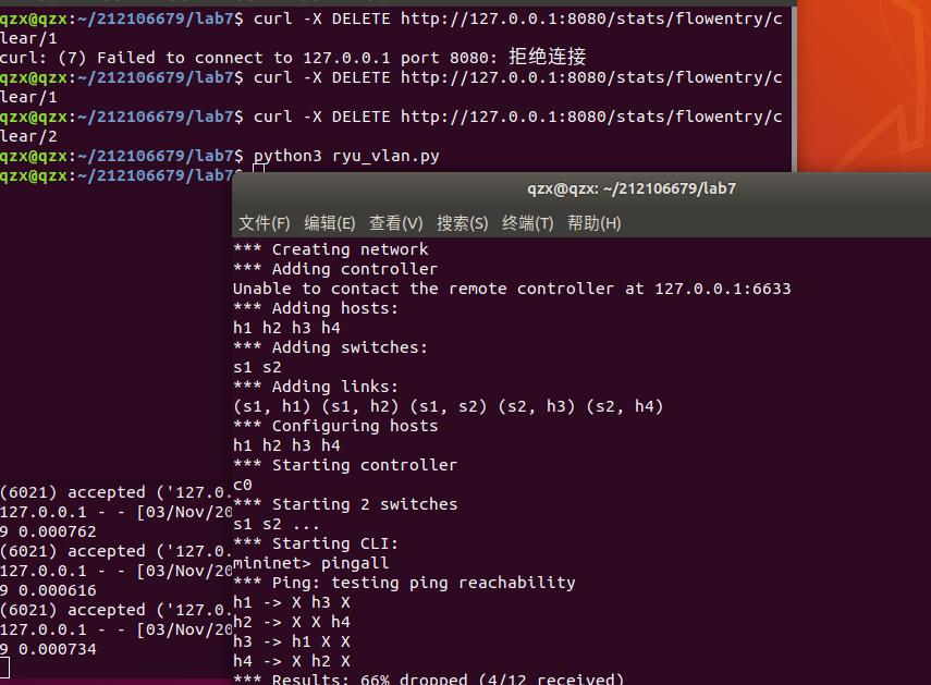 (2) 参考Ryu REST API的文档,基于VLAN实验的网络拓扑,编程实现相同的VLAN配置。