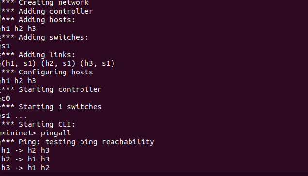 *重新创建拓扑sudo mn --topo=single,3 --mac --controller=remote,ip=127.0.0.1,port=6633 --switch ovsk,protocols=OpenFlow13