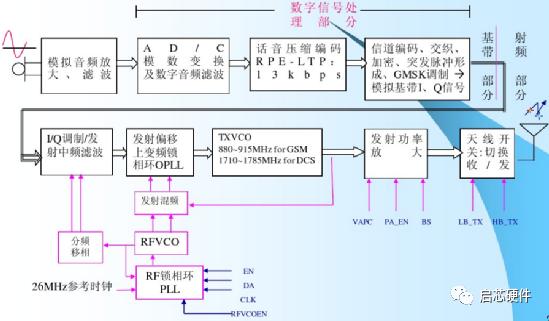对照下图GSM手机发送信号流程图