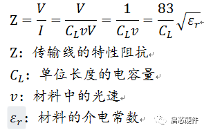 当信号在传输线上传播时,信号感受到的瞬态阻抗与单位长度电容和材料的介电常数有关,可表示为: