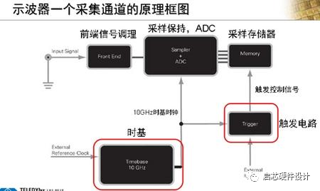 要熟练了解示波器必须知道示波器的内部结构,示波器包括放大器,放大器限制了示波器的带宽;模数转换器,采集存储器,决定了示波器的存储深度;数据处理以及最后的显示。