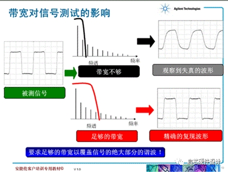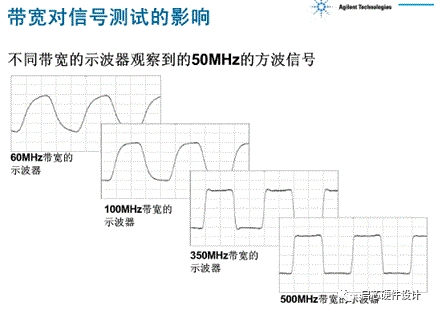 比如一个方波的频率是一兆赫,它有效的谐波却超过5兆赫,你用一个带宽只有一兆赫的示波器去显示,得到的是一个差不多是正弦波的显示,你用30兆赫的示波器一看,方波就是方波了。