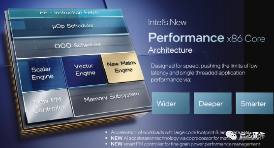 Sapphire Rapids通过改进微架构、IO和内存三个方面为整个核的性能带来了巨大的提升,可以看出在更加复杂的workloads的背景下,如何提供高带宽低延迟的内存管理是非常核心的问题。其次对AI、机器学习相关的计算能力优化也是现代处理器一个重要的发展方向,针对特定功能的加速器集成也是处理器厂商中流行的一种方案。尤其在AI方面,针对特定算子和算法的加速已经成为CPU设计不可或缺的一部分,Intel已经在微架构中引入加速器接口架构指令集以支持在用户模式下与各个加速器高效的交互。