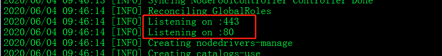 docker run -d -p 10080:80 -p 10443:443 rancher/rancher:v2.4.5 docker ps docker logs [CONTAINER ID]