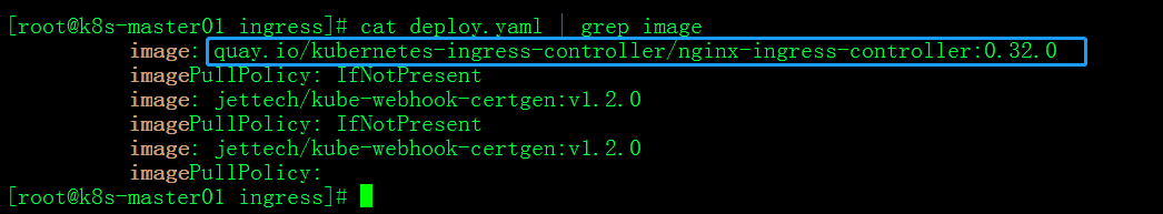 #cd /usr/local/install-k8s/plugin/ #mkdir ingress #cd ingress #wget https://raw.githubusercontent.com/kubernetes/ingress-nginx/controller-0.32.0/deploy/static/provider/cloud/deploy.yaml #cat deploy.yaml | grep image