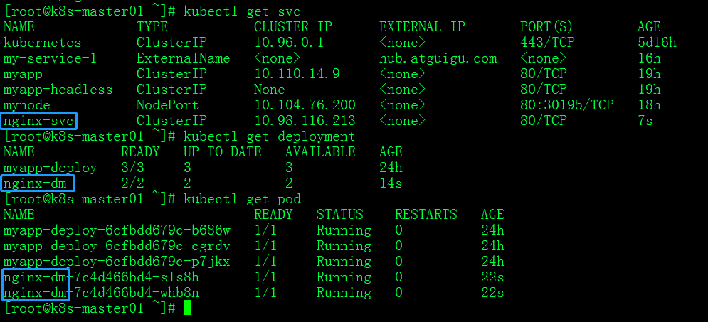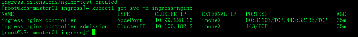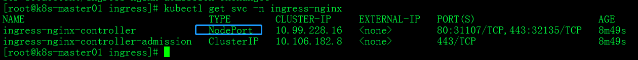 #kubectl get svc -n ingress-nginx #通过svc命令访问Service,-n 表示使用命名空间