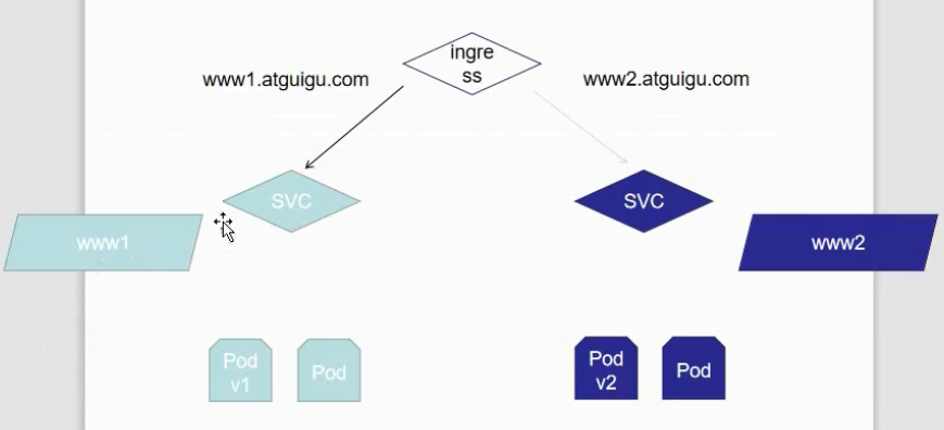 根据不同的域名指向不同的svc,实现上图的yaml文件如下: