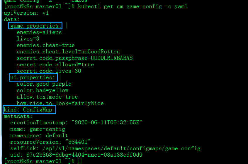 #kubectl get cm game-config -o yaml #得到game-config的值