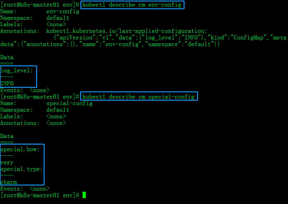 #kubectl describe cm env-config #kubectl describe cm special-config