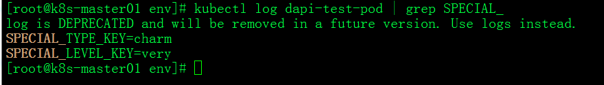 #kubectl log dapi-test-pod | grep SPECIAL_ #查看环境变量