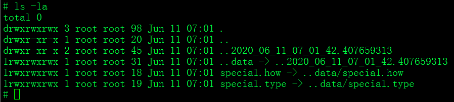 #cd /root/configmap #mkdir config #cd config #vim pod.yaml #创建一个configMap apiVersion: v1 kind: ConfigMap metadata: name: log-config #ConfigMap的name namespace: default data: log_level: INFO --- #创建Deployment对configMap进行调用,调用的方式是以volume方式进行挂载 apiVersion: extensions/v1beta1 kind: Deployment metadata: name: my-nginx spec: replicas: 1 template: metadata: labels: run: my-nginx spec: containers: - name: my-nginx image: hub.atguigu.com/library/nginx:latest ports: - containerPort: 80 volumeMounts: - name: config-volume mountPath: /etc/config volumes: - name: config-volume configMap: name: log-config #与上面的ConfigMap.metadata.name对应 #kubectl apply -f pod.yaml #kubectl get pod #kubectl log my-nginx-7955969b99-cf84m #kubectl exec my-nginx-7955969b99-cf84m -it -- /bin/sh #kubectl exec my-nginx-7955969b99-cf84m -it -- cat /etc/config/log_level #进入容器 # cd /etc/config # ls -la # cat log_level