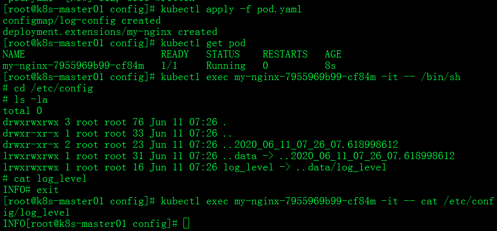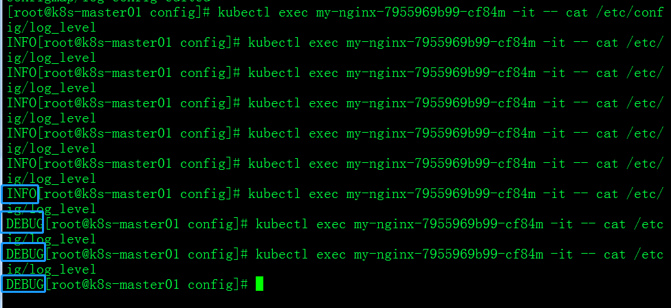 #kubectl exec my-nginx-7955969b99-cf84m -it -- cat /etc/config/log_level