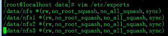 /data/nfs3 *(rw,no_root_squash,no_all_squash,sync)