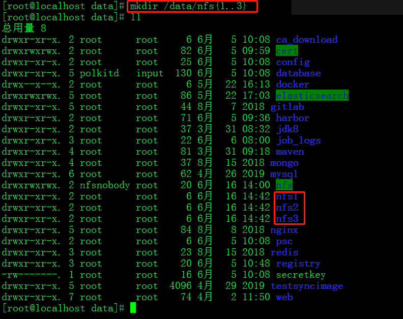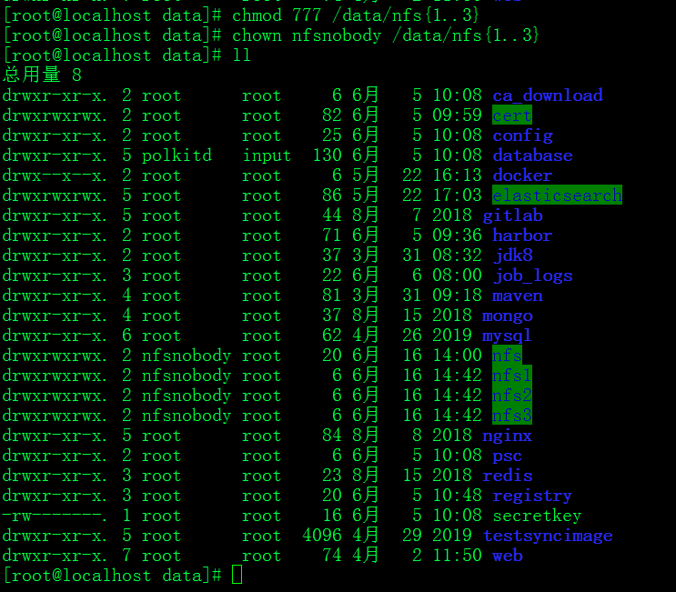 #chmod 777 /data/nfs{1..3} #chown nfsnobody /data/nfs{1..3}