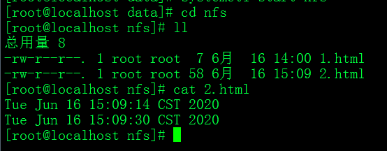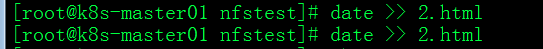 cd /nfstest/ #测试一下 echo >> 2.html 随便写
