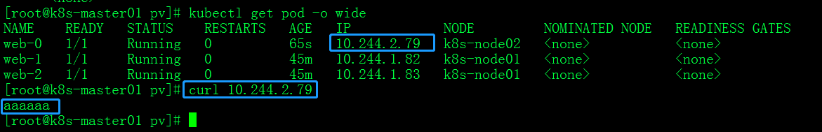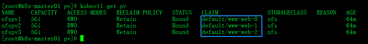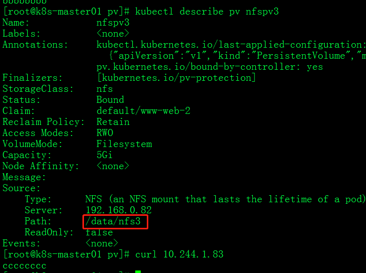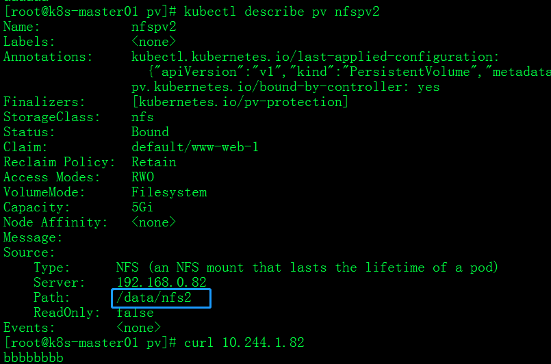 #kubectl describe pv nfspv2 #找到对应的harbor目录创建index.html文件 #curl 10.244.1.82 #kubectl describe pv nfspv3 #找到对应的harbor目录创建index.html文件 #curl 10.244.1.83