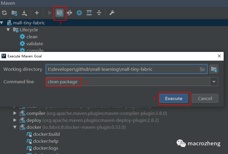 如果你想使用自定义命令的话,可以使用Execute Maven Goal这个功能,这里我使用的是mvn clean package命令