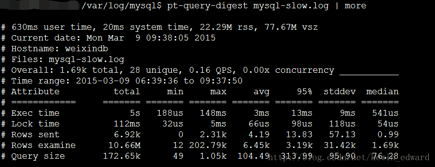 pt-query-digest --type=genlog localhost.log >slow_report11.log