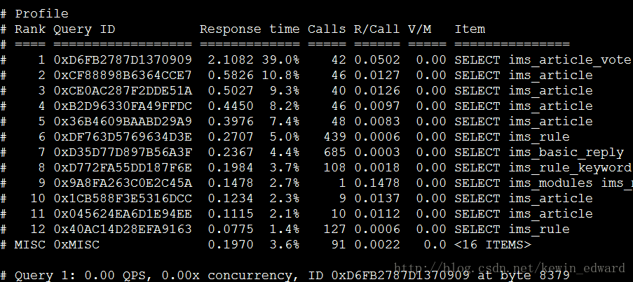 unique: 唯一查询数量,即对查询条件进行参数化以后,总共有多少个不同的查询,该例为28。