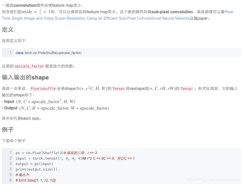 2. 在 1 里面提到的PixelShuffle,具体见参考3: