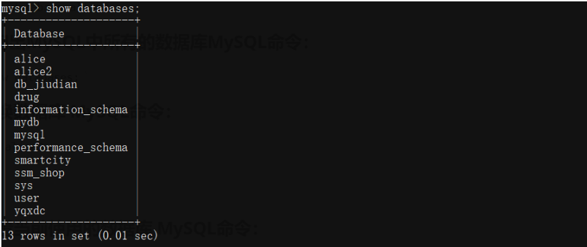 查询出MySQL中所有的数据库MySQL命令: