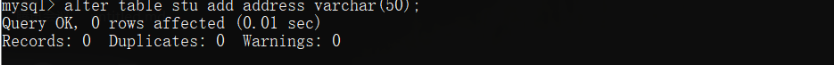 alter table stu add address varchar(50);