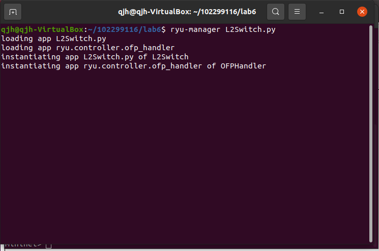 在本次实验中,通过阅读RYU文档并查看相关模块的源代码,了解了RYU控制器的工作原理,并比较了RYU的L2Switch模块与POX的Hub模块的异同。本次的实验基础部分难度较低,基本上根据老师的实验指导书一步一步来,即可顺利完成,同时实验操作与前两次操作ODL和POX控制器差不多,因此能较为快速地完成对应步骤。
