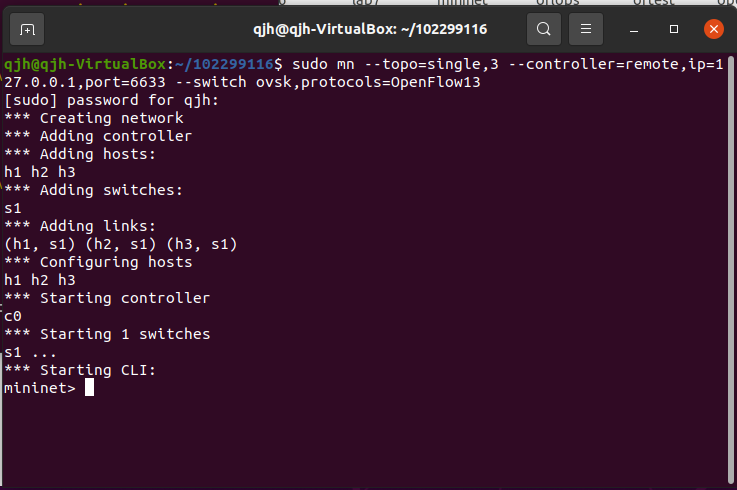 (1).利用Mininet平台搭建下图所示网络拓扑,并连接OpenDaylight;