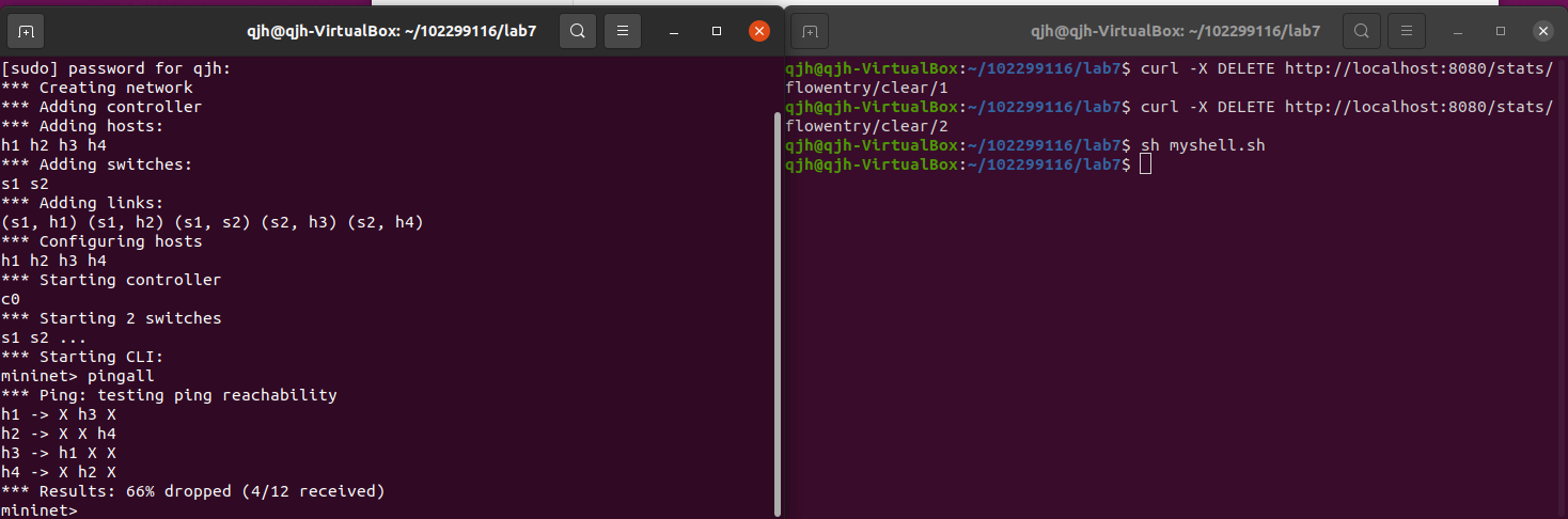 - (1) 实现上述OpenDaylight实验拓扑上相同的硬超时流表下发。