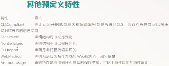 特性是一种允许我们向程序的程序集增加元数据的语言结构,它是用于保存程序结构信息的某种特殊类型的类