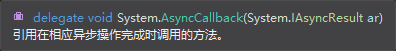 然后是倒数两个参数。第一个是回调函数,可在线程结束后调用一个方法,这个方法或委托只能传递一个IAsyncResult类型的参数,该参数值由第二个参数提供,一般可以传递被调用方法的委托;