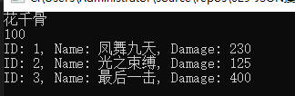 {"ID":1,"Name":"凤舞九天","Damage":230},