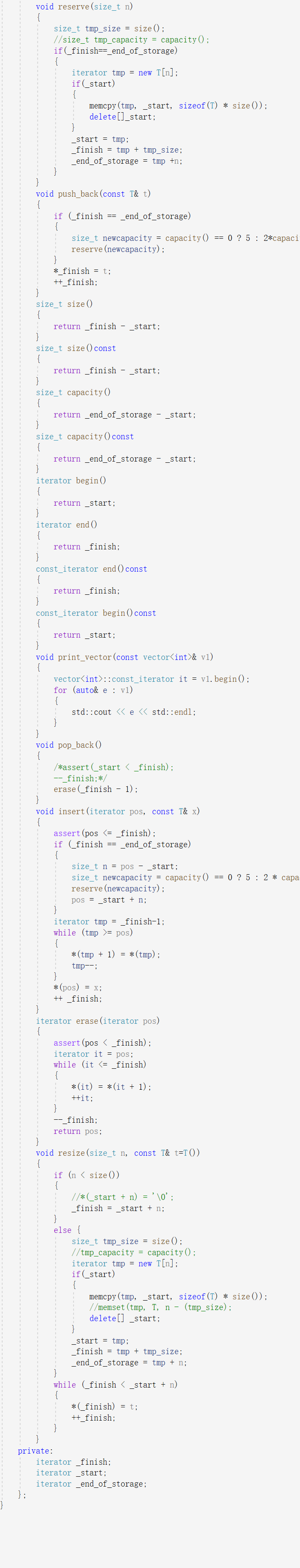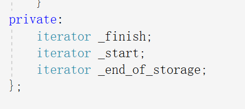 vector类不同于string类.他其中的成员变量都为重定义自定义类型指针为迭代器,用指针的位置来代表容量,当前容器大小