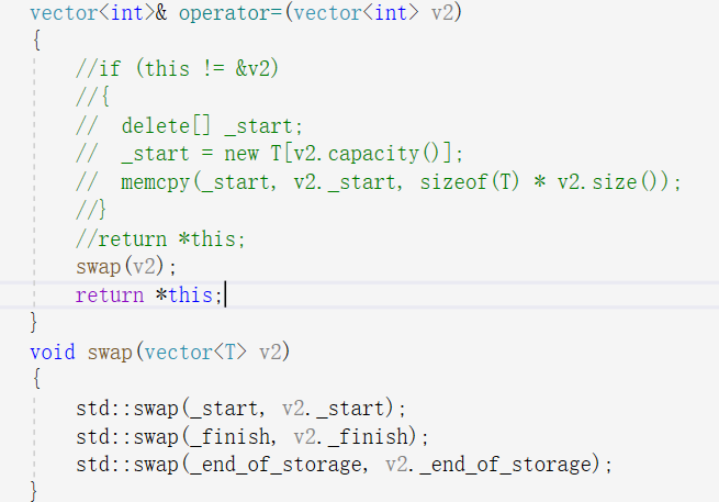 拷贝构造和重载=运算符:拷贝构造可以开空间并依次尾插被拷贝类的各个数值来达到构造的目的,而自定义运算符可以根据函数传参自动调用拷贝构造的特性来完成赋值的目的.手动实现swap为了提高效率.