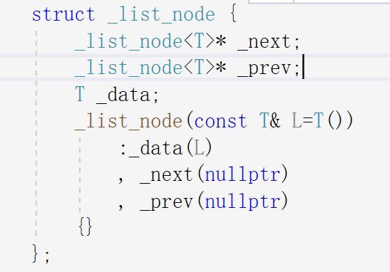首先list不同于string和vector他是链式结构,所以需要对他的每个节点自定义.并且每个节点要包含上或下节点的指针.