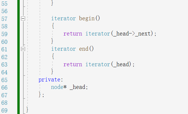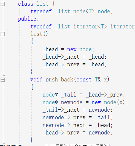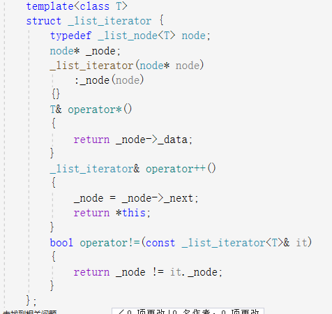 接下来是比较特殊的地方,迭代器,list的迭代器需要另建一个类,