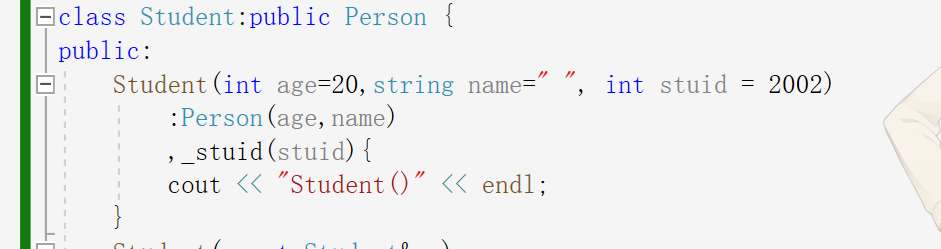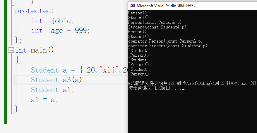 之前在c语言写学生管理系统时操作对象只是学生,对学生进行增删查改,若是想要定义老师的结构题又有很大的工作量,但是其中成员变量又有很多重复的,C++的继承可以很好的解决这种问题,继承分为私有保护和公有继承,一般私有继承和保护继承很少用到,所以大多是公有继承派生类分别继承基类的共有在派生类中也是共有,继承的保护在派生类中也是保护,但是继承的私类在派生类中不可见,但是可以用从基类继承到的函数来访问基类中的私有,class默认继承私有struct默认继承公有,