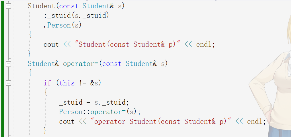 初始化列表基类时使用匿名初始化,可以根据需求灵活调用基类中的各种构造函数,拷贝就用拷贝,重载赋值运算符就用重载赋值运算符,