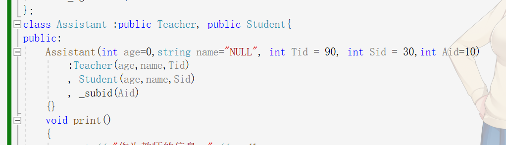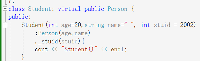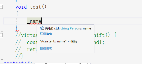 比如Person作为一个总的基类,其有两个派生类分别是Student和Teacher,而这两个派生类又同时作为Assistant的基类,那么Assistant不仅继承了Teacher的name成员也继承了tudent的name成员,就造成了不必要的数据冗余和二义性,二义性的问题可以通过显示访问基类来解决,但是数据冗余就得通过其他方法来解决,
