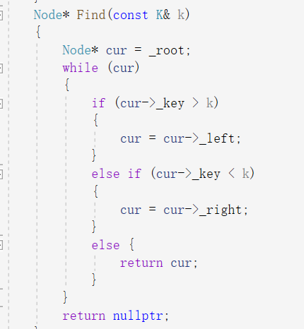 接下来是搜索二叉树的寻找函数,这个比较简单,常规的寻找语句: