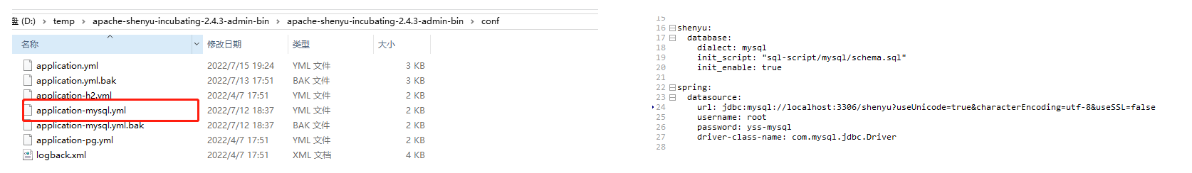 2.3 配置数据库并修改yaml