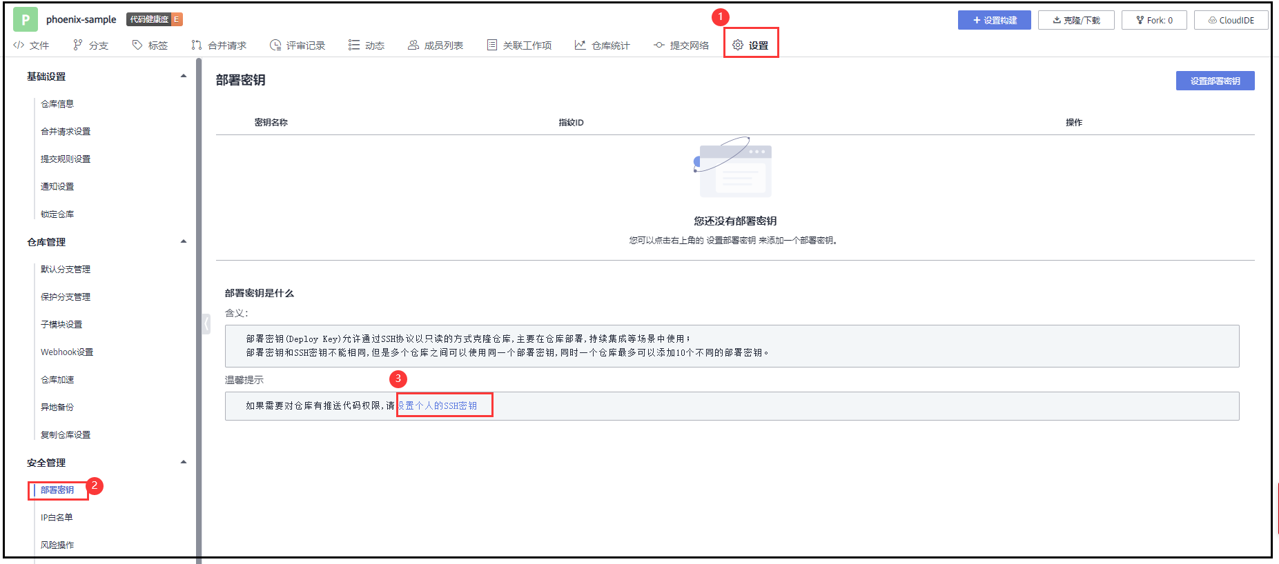 (2)将生成的ssh密钥添加到CodeHub中。