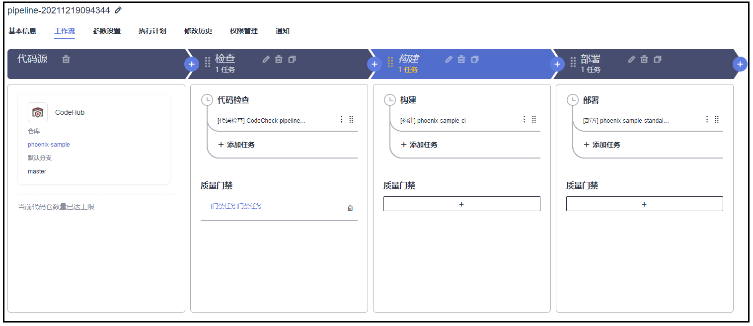 - 代码检查选择任务;CodeCheck-pipeline-20211219094344-101(样例中已经创建好的)
