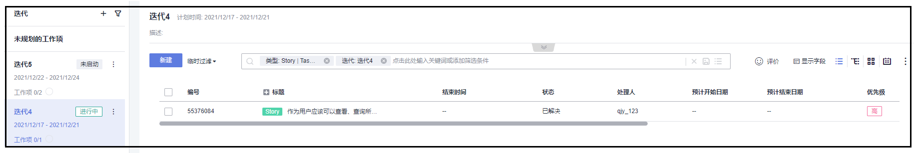 (2)创建新的迭代任务迭代4和迭代5,并将“为规划的工作项”中待规划的task过拽到相应的迭代任务中。